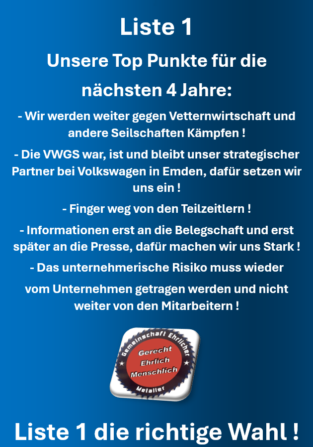 Alle fest angestellten Mitarbeitenden der Volkswagen AG und der VWGS in Emden sind wahlberechtigt.