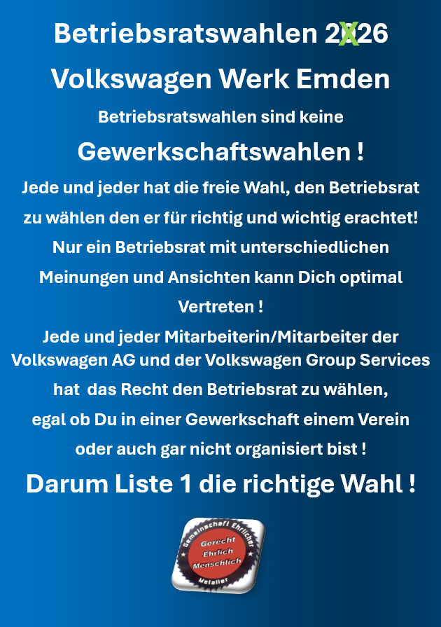 Dieser Abschnitt informiert umfassend über die anstehenden Betriebsratswahlen 2026, die Kandidaten, das Wahlverfahren und die wichtigsten Termine für alle Beschäftigten bei Volkswagen Emden.