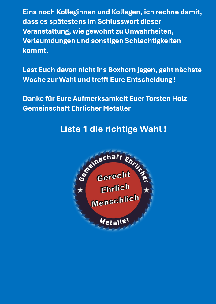 Die Betriebsratswahl ist für den 10 März bis zum 13 März geplant.